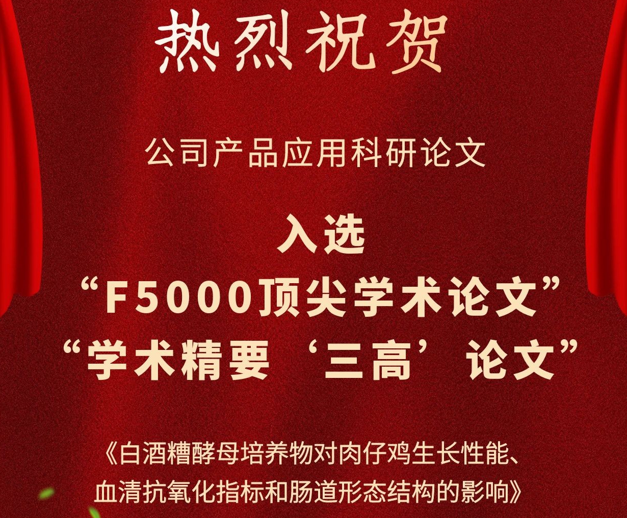 近日,公司產(chǎn)品應用科研領(lǐng)域又聞佳訊傳來! 公司與中國農(nóng)業(yè)科學院飼料研究所家禽營養(yǎng)與飼料創(chuàng)新團隊共同完成并發(fā)表于《動物營養(yǎng)學報》(2019,31(5): 2357-2366)的學術(shù)論文—《白酒糟酵母培養(yǎng)物對肉仔雞生長性能、血清抗氧化指標和腸道形態(tài)結(jié)構(gòu)的影響》,入選2022年度“領(lǐng)跑者5000—中國精品科技期刊頂尖學術(shù)論文(F5000)”和學術(shù)精要(2023年5-6月)高PCSI論文、高被引論文和高下載論文。 該論文探究了公司白酒糟酵母培養(yǎng)物對肉仔雞生長性能、血清抗氧化指標和腸道形態(tài)結(jié)構(gòu)的影響。研究表明,飼糧添加白酒糟酵母