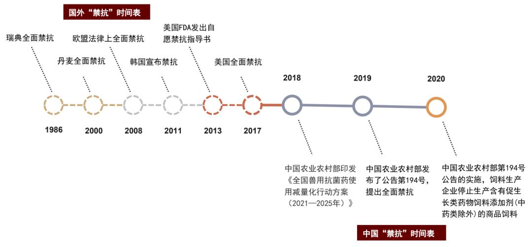 正因如此,“限抗”“禁抗”成了養(yǎng)殖業(yè)綠色發(fā)展的必然趨勢,全球很多國家陸續(xù)推動(dòng)了各自“禁抗”進(jìn)程,我國也不例外。