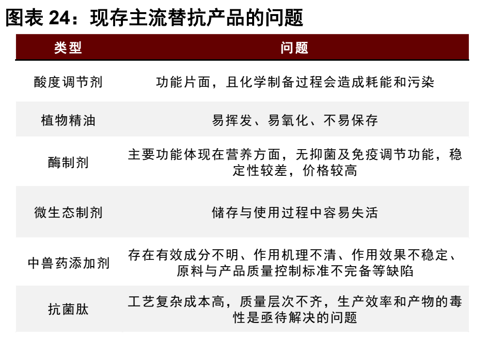 不過,抗生素雖然退出了舞臺,但“它打下的那片江山”猶在,市場上也源源不斷地涌現(xiàn)出不同的抗生素替代品,微生態(tài)活菌制劑、酶制劑、酸化劑、抗菌肽以及天然植物及其提取物等,都是該領(lǐng)域的熱門“選手”。