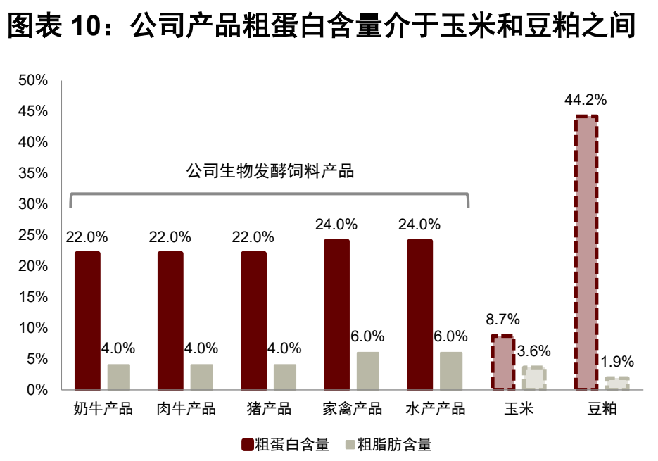 在營養(yǎng)性方面:公司產(chǎn)品富含粗蛋白、粗脂肪、酸溶蛋白等營養(yǎng)成分,其中,粗蛋白含量介于玉米和豆粕之間,能夠有效供給動(dòng)物基礎(chǔ)營養(yǎng)物質(zhì),可部分替代常用飼料原料玉米、豆粕等進(jìn)行動(dòng)物飼喂。