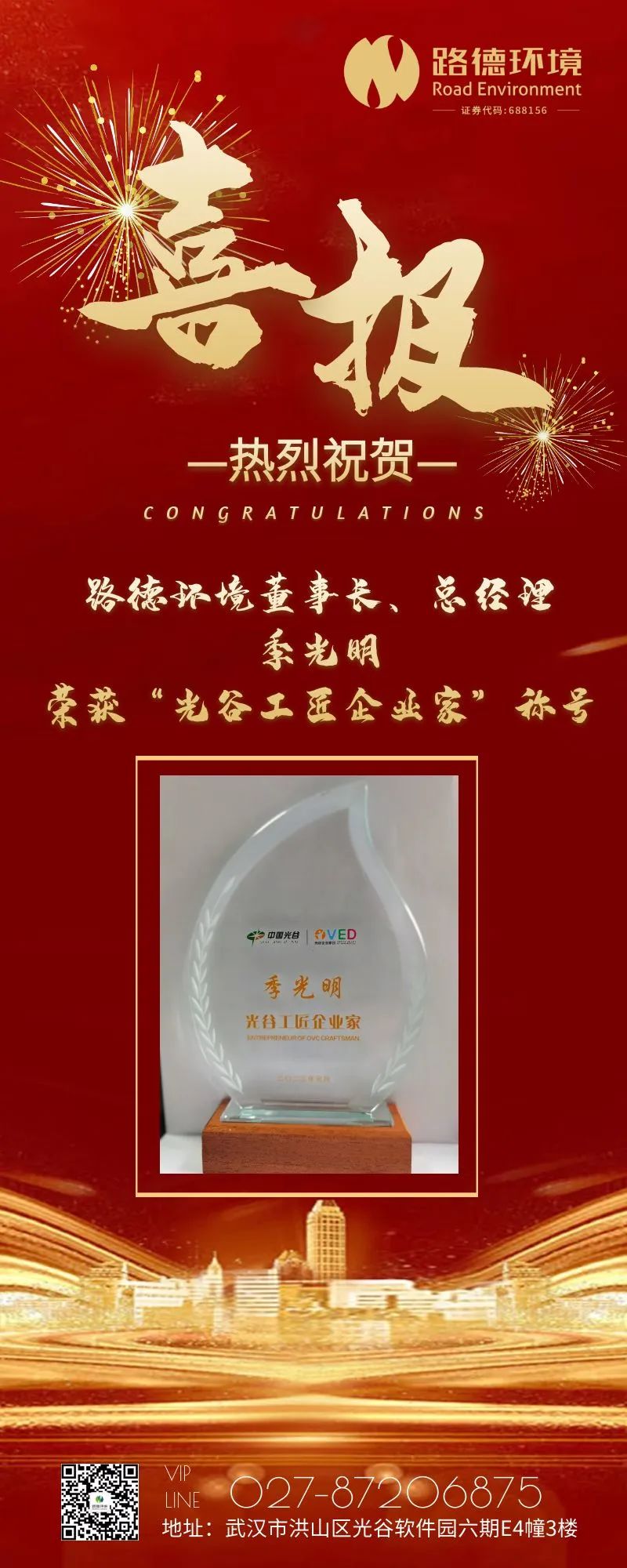 【路德·喜報】熱烈祝賀季光明董事長榮獲“光谷工匠企業(yè)家”稱號