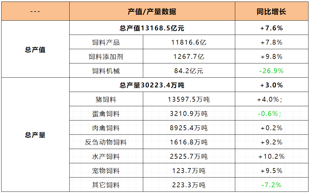 文件顯示:2022年,全國工業(yè)飼料產(chǎn)值、產(chǎn)量雙增長,產(chǎn)品結構調(diào)整加快,規(guī)模企業(yè)經(jīng)營形勢總體平穩(wěn),飼料行業(yè)創(chuàng)新發(fā)展步伐加快。