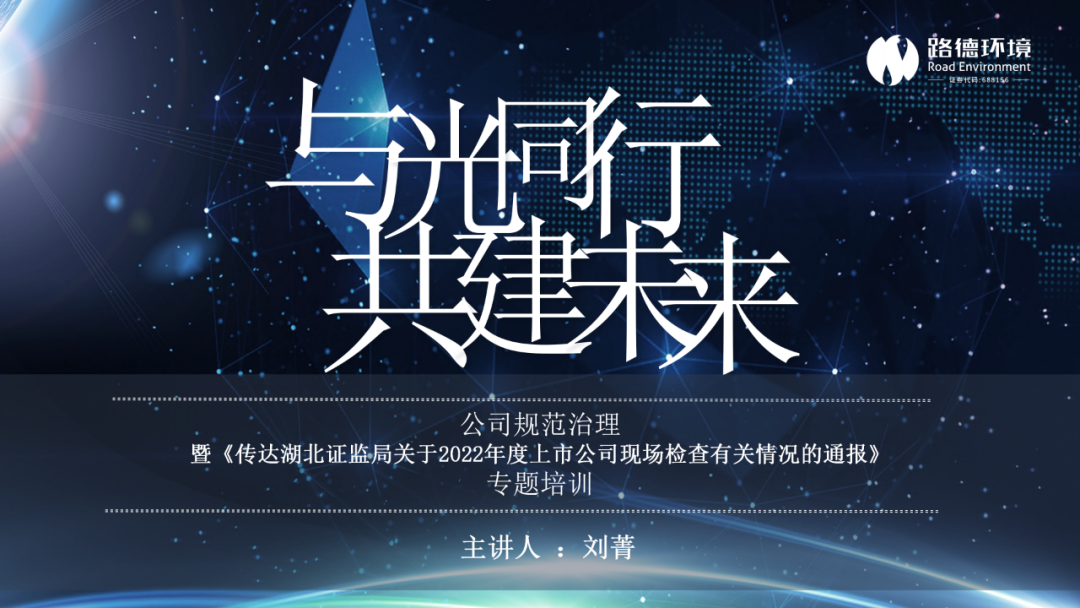2月25日,為響應(yīng)湖北證監(jiān)局“進一步提升轄區(qū)上市公司規(guī)范運作水平,推動高質(zhì)量發(fā)展”的號召,路德環(huán)境召開了“公司規(guī)范治理暨《傳達湖北證監(jiān)局關(guān)于2022年度上市公司現(xiàn)場檢查有關(guān)情況的通報》專題培訓(xùn)”活動。