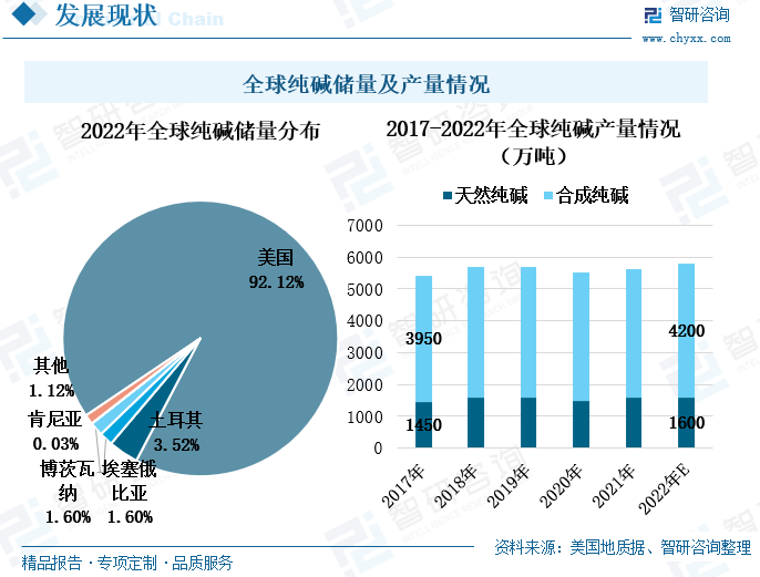 全球純堿儲(chǔ)量及產(chǎn)量情況 圖片來源/智研咨詢