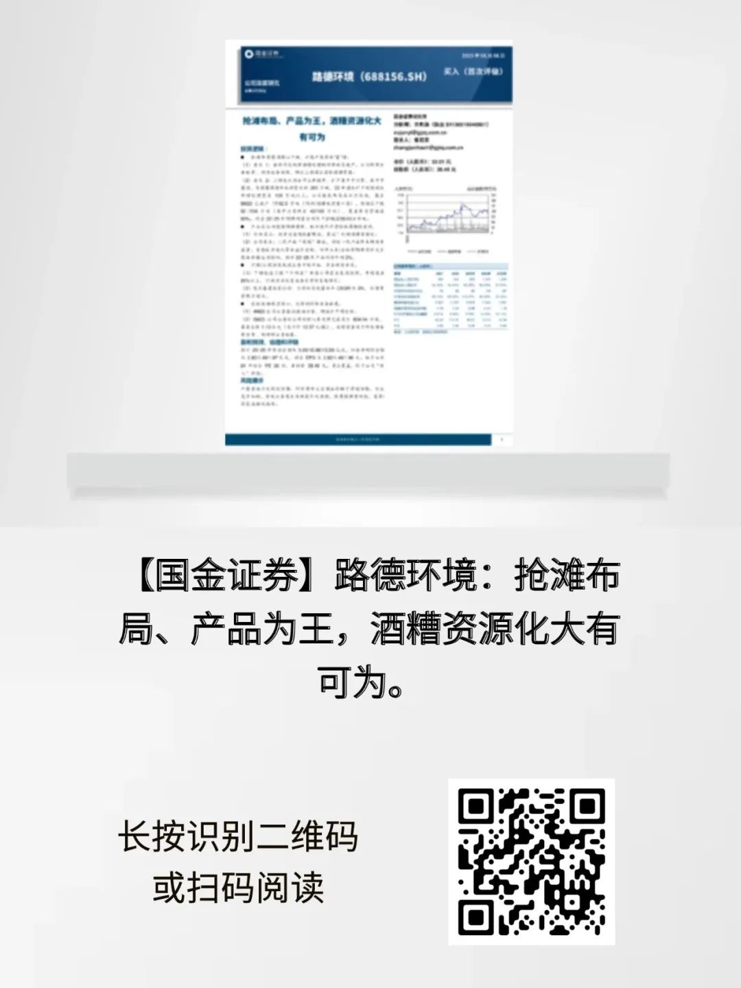 2023年6月6日,國金證券發(fā)布了以《路德環(huán)境:搶灘布局、產(chǎn)品為王,酒糟資源化大有可為》為主題的深度證券研究報告,首次覆蓋路德環(huán)境,并給予了“買入”評級。