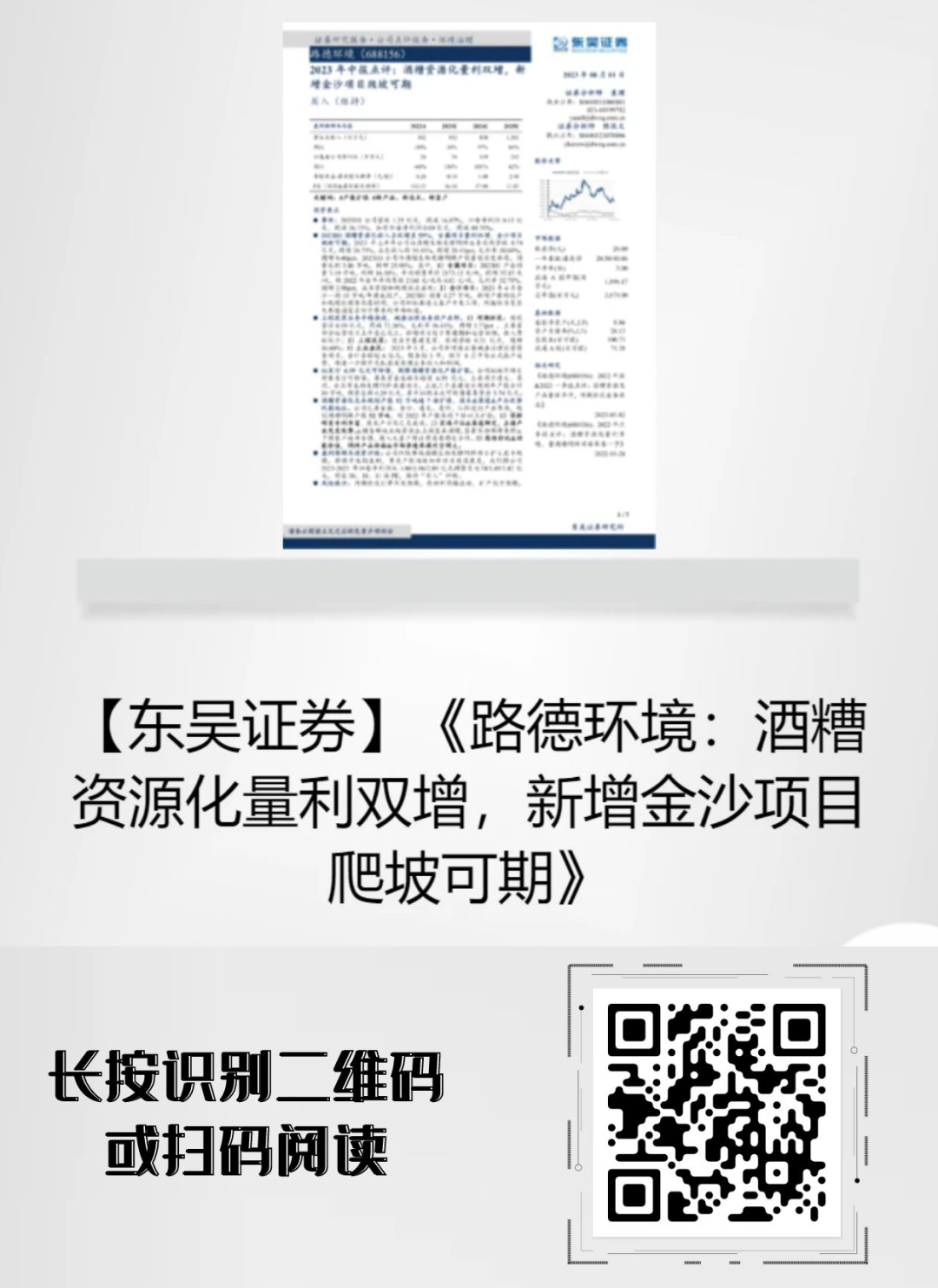 【點(diǎn)評(píng)報(bào)告】東吳證券點(diǎn)評(píng)路德環(huán)境:酒糟資源化量利雙增,新增金沙項(xiàng)目爬坡可期