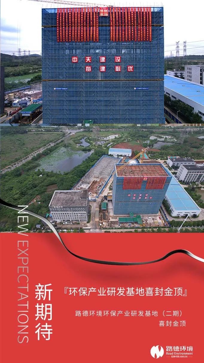 5月22日,路德環(huán)境環(huán)保產(chǎn)業(yè)研發(fā)基地(二期)喜封金頂,公司新家園將在2024年全面建成并投入使用,令人滿懷期待。