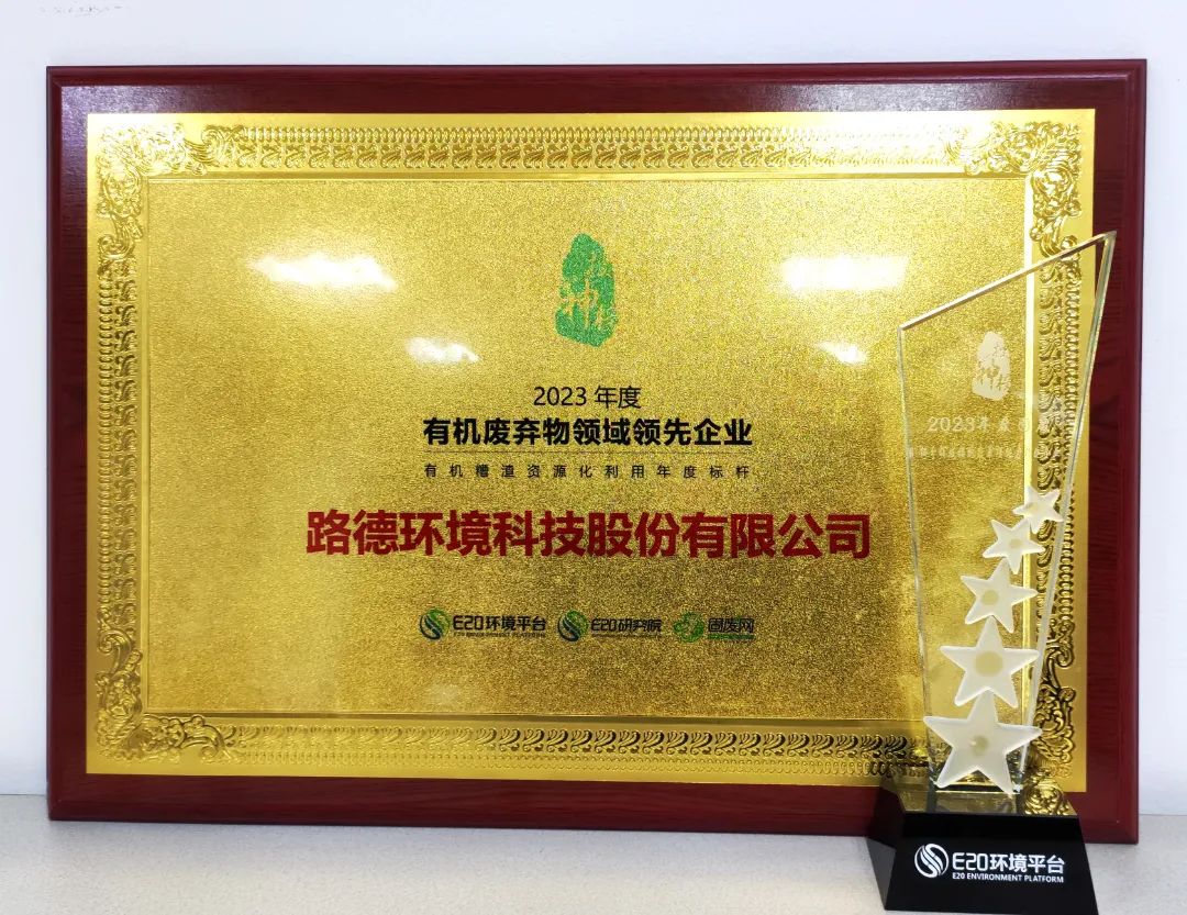 其中,路德環(huán)境名列“2023年度有機廢棄物領域領先企業(yè)”榮譽榜單,獲評為“有機糟渣資源化利用標桿企業(yè)。”