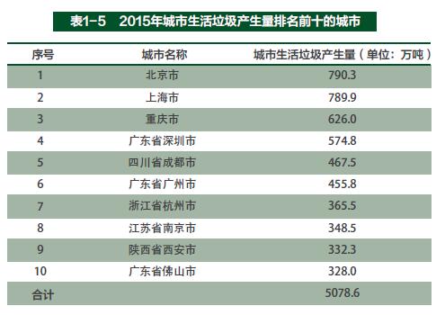 246個(gè)大、中城市中,城市生活垃圾產(chǎn)生量居前10位的城市見下表。城市生活垃圾產(chǎn)生量最大的是北京市,產(chǎn)生量為790.3萬噸,其次是上海、重慶、深圳和成都,產(chǎn)生量分別為789.9萬噸、626.0萬噸、574.8萬噸和467.5萬噸。前10位城市產(chǎn)生的城市生活垃圾總量為5078.6萬噸,占全部信息發(fā)布城市產(chǎn)生總量的27.4%。