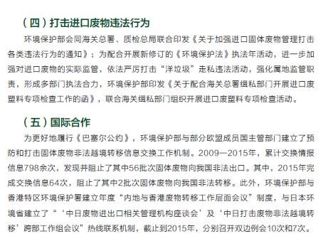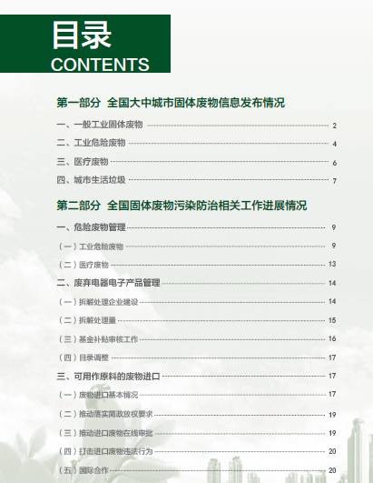 《年報(bào)》還介紹了我國現(xiàn)行固體廢物污染防治主要政策法規(guī)、固體廢物管理機(jī)構(gòu)能力建設(shè)情況、固體廢物管理技術(shù)培訓(xùn)情況以及固體廢物污染防治相關(guān)科研成果。并選擇4個(gè)代表性省份,介紹了他們在解決固體廢物管理重點(diǎn)、難點(diǎn)問題方面的經(jīng)驗(yàn)和做法。