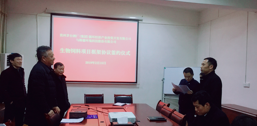 2019年2月15日路德環(huán)境科技股份有限公司與貴州茅臺(tái)酒廠(集團(tuán))循環(huán)經(jīng)濟(jì)產(chǎn)業(yè)投資有限公司就茅臺(tái)酒廠酒糟綜合處理制備有機(jī)發(fā)酵飼料項(xiàng)目簽署框架合作協(xié)議,并共同成立合資公司。