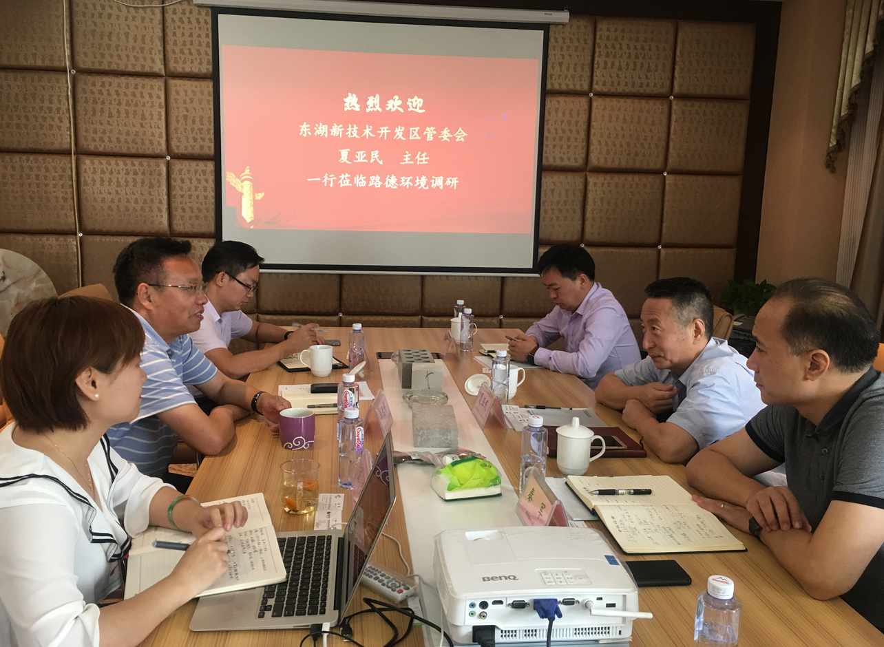 2019年7月22日,東湖高新區(qū)黨工委委員、管委會副主任夏亞民、區(qū)金融辦主任秦軍等一行蒞臨路德環(huán)境調(diào)研,公司董事長季光明、董事會秘書劉菁等領(lǐng)導(dǎo)熱情接待并進行了座談。