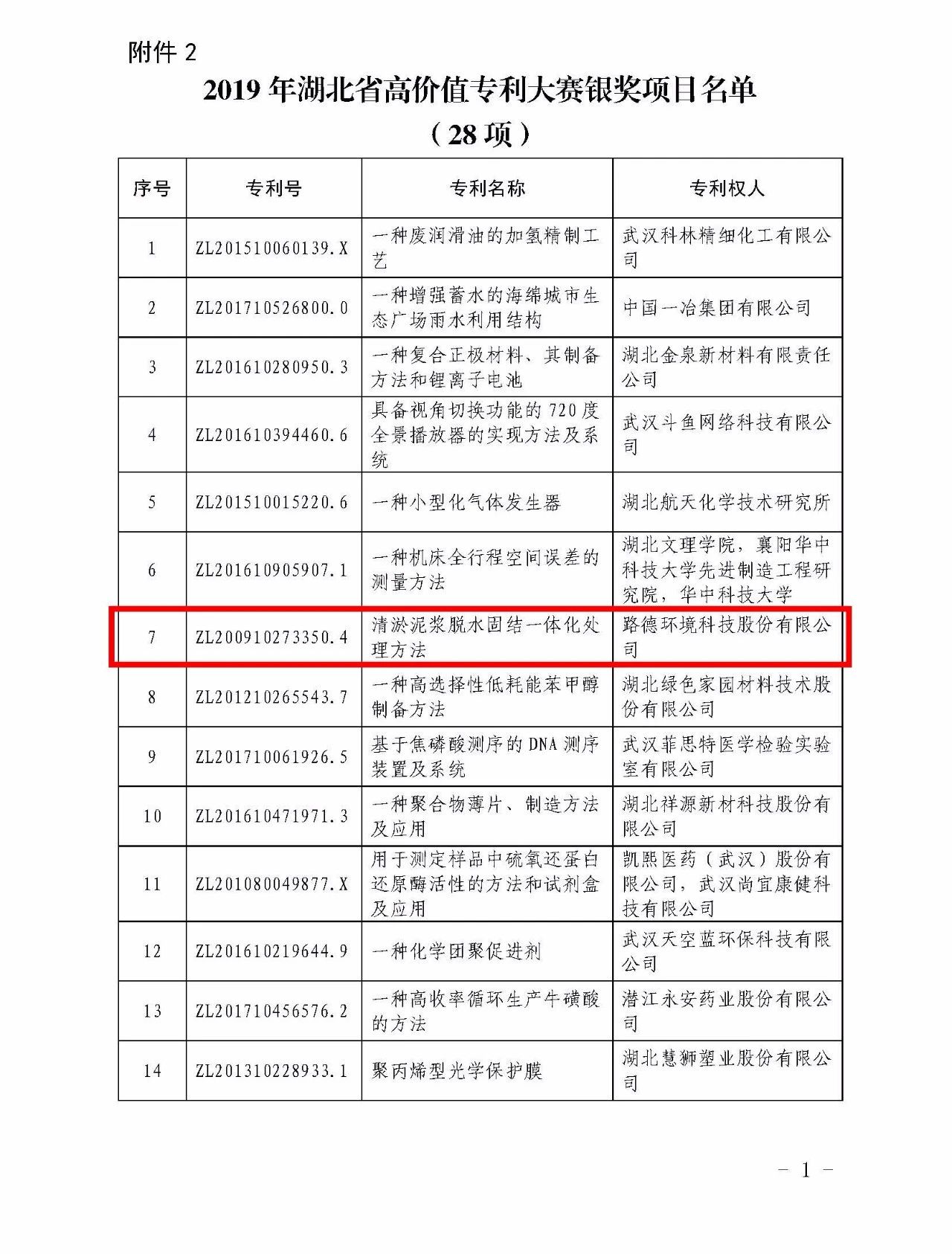 6月12日,湖北省知識(shí)產(chǎn)權(quán)局公布2019年湖北省高價(jià)值專(zhuān)利大賽結(jié)果。路德環(huán)境科技股份有限公司呈報(bào)的《清淤泥漿脫水固結(jié)一體化處理方法》榮獲2019年湖北省高價(jià)值專(zhuān)利大賽銀獎(jiǎng)。