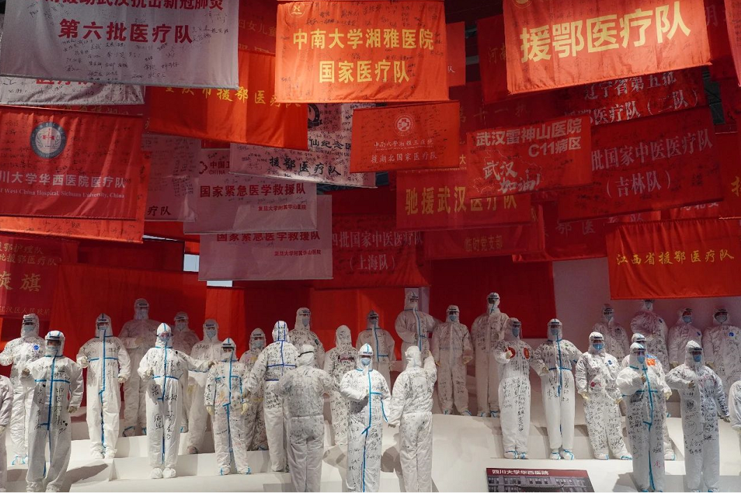 武漢市抗疫展覽館內(nèi),6個(gè)主題展區(qū)、1100余張照片、45個(gè)視頻、1000余件實(shí)物展品……,正是用一件件物品、一張張照片,帶領(lǐng)人們回到了年初波瀾起伏的數(shù)月。一幅幅寫實(shí)抗疫照片以及專門復(fù)原的雷神山醫(yī)院、方艙醫(yī)院等實(shí)物場(chǎng)景,集中展示了英雄的武漢人民在黨中央的堅(jiān)強(qiáng)領(lǐng)導(dǎo)下進(jìn)行抗疫斗爭(zhēng)的鮮活場(chǎng)景和感人事跡,瞬間把大家的思緒拉回到了那場(chǎng)驚心動(dòng)魄、沒有硝煙的戰(zhàn)役中。集中展示了以習(xí)近平同志為核心的黨中央團(tuán)結(jié)帶領(lǐng)全國人民打贏疫情防控的人民戰(zhàn)爭(zhēng)、總體戰(zhàn)、阻擊戰(zhàn)的偉大歷程。