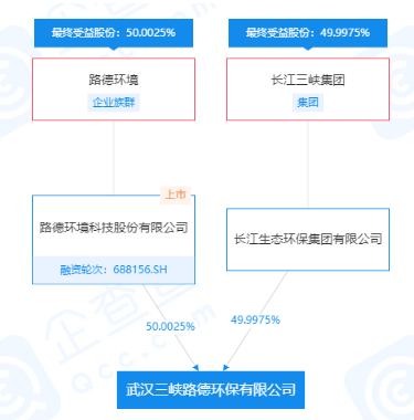 2020年7月,路德環(huán)境與長江三峽集團(tuán)展開合作,成立武漢三峽路德環(huán)保技術(shù)有限公司,路德環(huán)境占股50.002%。